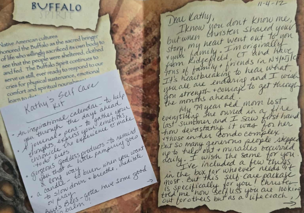“Check out our local organization that I’m a part of: Staten Island Giving Circle. At least once a year, I refer to your note. Our Giving Circle president, Michele, knows the story well—how a complete stranger sent me a self-care kit and how much it meant to me.