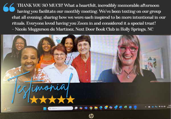 My last article was about having fun with AI. Sometimes I feel like we’re living in the days of George Jetson, don’t you? But today, I want to return to something timeless, something our ancestors knew instinctively: the power of gathering in community. We are wired for circles, for stories, for rituals that mark the rhythm of our days and the milestones of our lives. A few days ago, I had the privilege of joining the Next Door Book Club in Holly Springs, North Carolina to discuss my book Sacred Celebrations: Designing Rituals to Navigate Life’s Milestone Transitions. These seven women have been meeting since before Covid, weaving a tapestry of deep friendship. As one member shared, “I love us because we are diverse and multi-generational!” They don’t just read together, they travel together, celebrate together, and grow together. Our conversation was rich and layered. We explored daily rituals and the big life-moment ones. Each woman offered her own wisdom and all of them could name rituals that matter. Some of the stories they shared were touching and powerful: